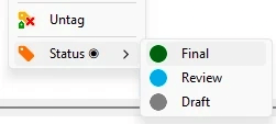 If e.g. a document has one of the tags contained by the set, Another can be choosen in the context menu..
